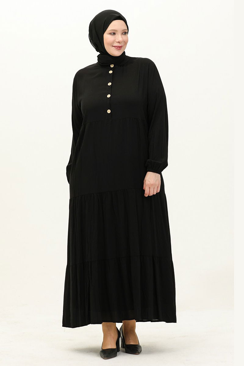 The Half-Buttoned Viscose Dress is a hijab-friendly model that can be comfortably worn in all seasons. Recommended to be hand washed, this dress is made from breathable viscose fabric. Its elegant design is completed with a half Mandarin collar and half front button-up style, elastic cuffs, and is unlined. This dress will put your elegance in the spotlight, suitable for both everyday wear and special occasions.