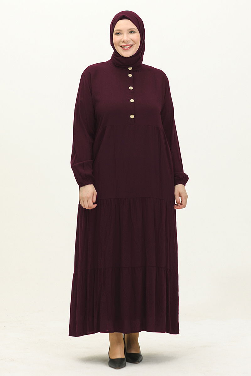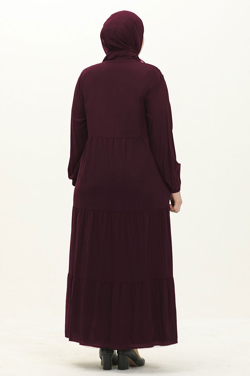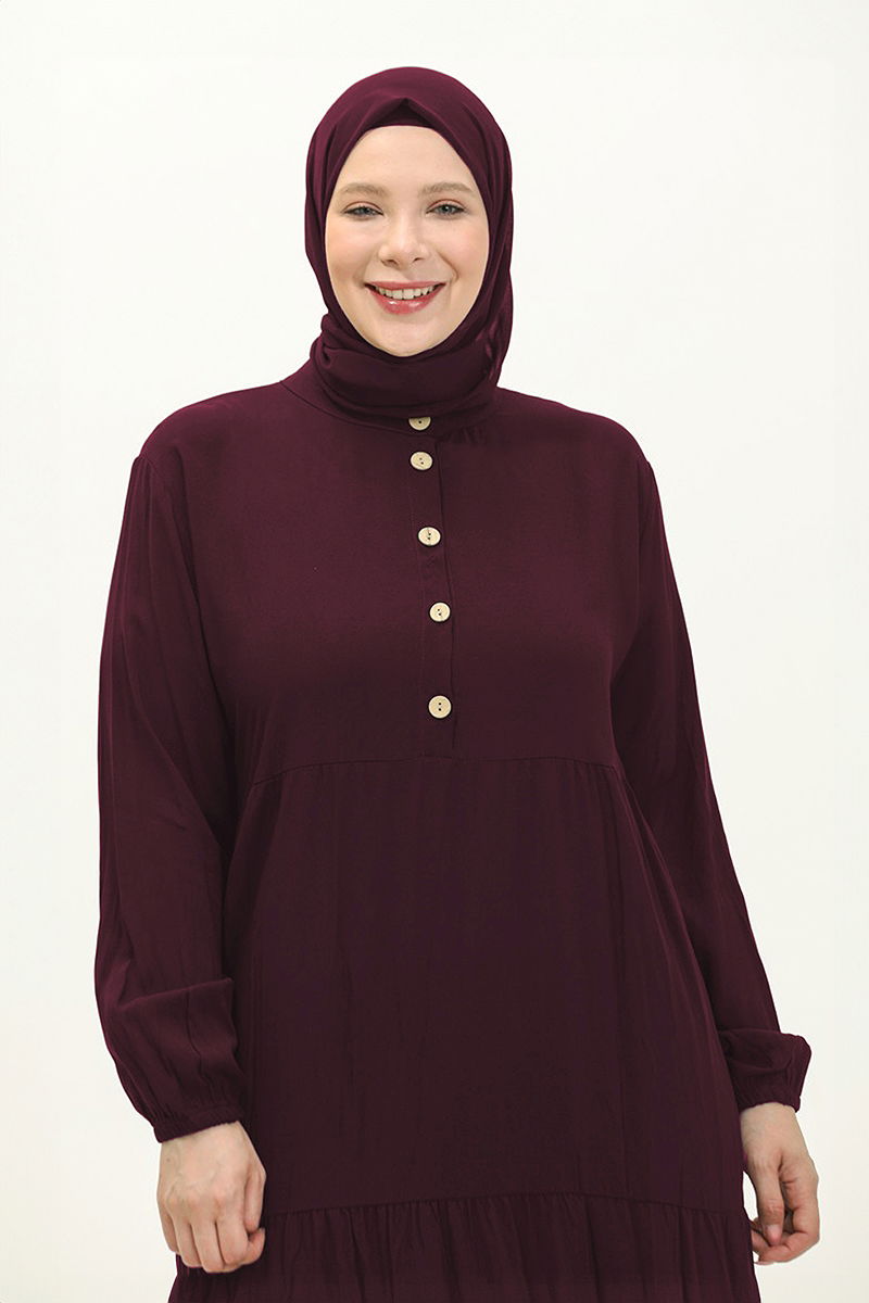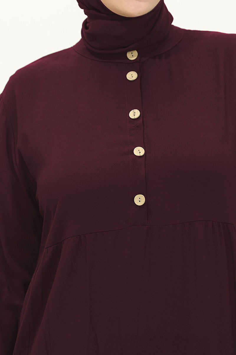 The Half-Buttoned Viscose Dress is a hijab-friendly model that can be comfortably worn in all seasons. Recommended to be hand washed, this dress is made from breathable viscose fabric. Its elegant design is completed with a half Mandarin collar and half front button-up style, elastic cuffs, and is unlined. This dress will put your elegance in the spotlight, suitable for both everyday wear and special occasions.