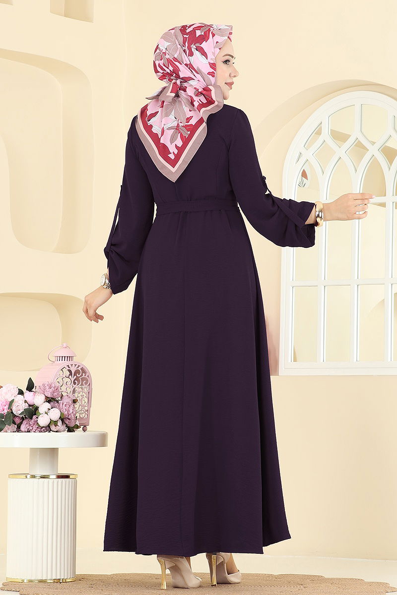 The Epaulette Detailed Aerobin Dress is suitable for those who wear modest clothing. Made from aerobin fabric, this stylish dress can be comfortably worn in all seasons. Its delicate fabric is washable at 30 degrees and easy to maintain. It offers a modern look with a shirt collar and a half-button front. The unlined design does not show the interior, ensuring comfortable wear. The product has a seamed waist and active epaulette buttons on the cuffs. The belt, designed to prevent waviness, has sewn ends and can be optionally removed. This dress is both stylish and functional.