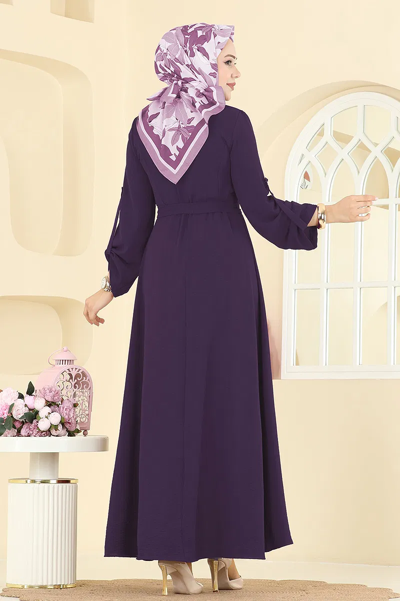 The Epaulette Detailed Aerobin Dress is suitable for those who wear modest clothing. Made from aerobin fabric, this stylish dress can be comfortably worn in all seasons. Its delicate fabric is washable at 30 degrees and easy to maintain. It offers a modern look with a shirt collar and a half-button front. The unlined design does not show the interior, ensuring comfortable wear. The product has a seamed waist and active epaulette buttons on the cuffs. The belt, designed to prevent waviness, has sewn ends and can be optionally removed. This dress is both stylish and functional.