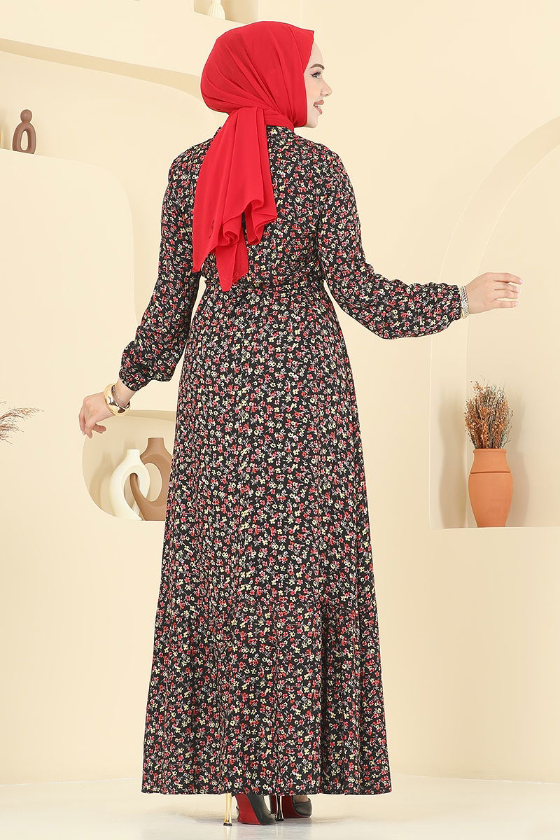 Elegance and comfort come together in the Floral Patterned Viscose Dress, a perfect choice to complete your modest fashion style. Suitable for all seasons, this dress is made from viscose and can be gently washed at 30 degrees. It features a Semi-Mandarin collar and a half-button front design for a modern look. Additionally, the belt at the waist offers a refined silhouette, while the elasticated cuffs ensure a comfortable fit.
