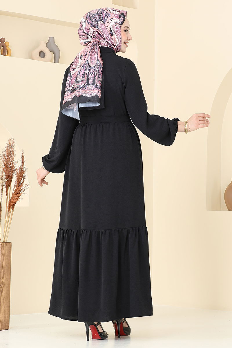 المنتج لديه ياقة نصف بيضوية. المنتج به أزرار من الأمام. غير مبطنة. الحزام متضمن، ،يمكن استخدامها حسب الرغبة السوار مطاطي. قد يكون هناك اختلاف في الدرجة اللونية في المنتج بسبب التقاط الصور الفوتوغرافية.