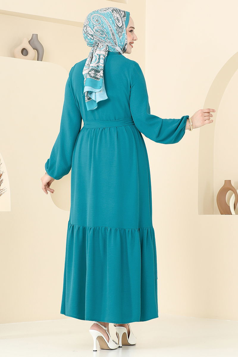 المنتج لديه ياقة نصف بيضوية. المنتج به أزرار من الأمام. غير مبطنة. الحزام متضمن، ،يمكن استخدامها حسب الرغبة السوار مطاطي. قد يكون هناك اختلاف في الدرجة اللونية في المنتج بسبب التقاط الصور الفوتوغرافية.