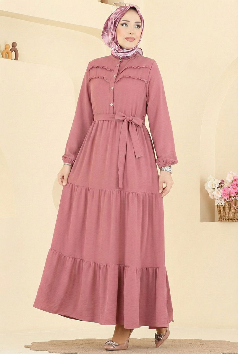 المنتج لديه ياقة نصف بيضوية. المنتج به أزرار نصف أمامي. غير مبطنة. الحزام متضمن، ،يمكن استخدامها حسب الرغبة السوار مطاطي. قد يكون هناك اختلاف في الدرجة اللونية في المنتج بسبب التقاط الصور الفوتوغرافية.