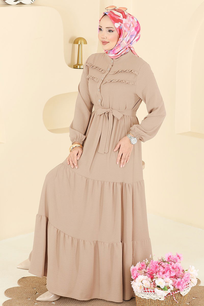 Product Feature : It is a new season hijab fashion product. The product has a Half Judge collar. The product has half front buttons. Unlined. Belt included, optional not available. The cuff is rubberized. There may be a tonal difference in the product due to concept photo shoots.