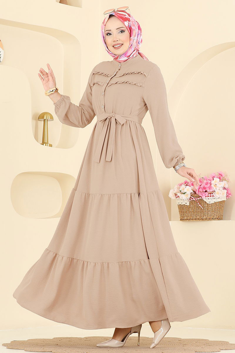 المنتج لديه ياقة نصف بيضوية. المنتج به أزرار نصف أمامي. غير مبطنة. الحزام متضمن، ،يمكن استخدامها حسب الرغبة السوار مطاطي. قد يكون هناك اختلاف في الدرجة اللونية في المنتج بسبب التقاط الصور الفوتوغرافية.
