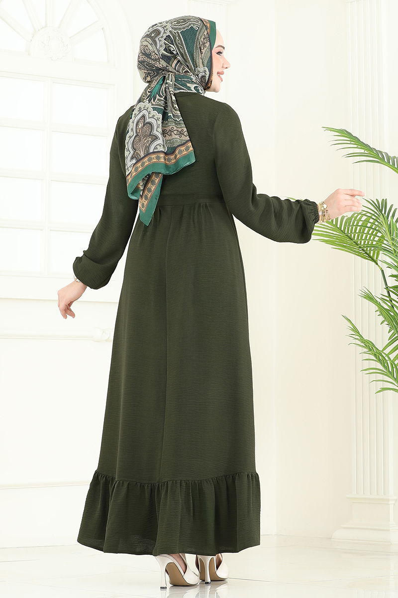 Product Feature : It is a new season hijab fashion product. It has a button that can be used from the back. The product is worn on the head. The product has a Cycling collar. Unlined. Belt included, optional not available. Accessories are not included. The cuff is rubberized. There may be a tonal difference in the product due to concept photo shoots.