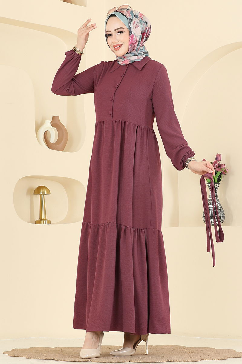 المنتج لديه ياقة القميص. المنتج به أزرار نصف أمامي. المنتج به كشكشة في جزء التنورة. غير مبطنة. المنتج يحتوي على حزام خصر مُخاط. الحزام متضمن، ،يمكن استخدامها حسب الرغبة السوار مطاطي. قد يكون هناك اختلاف في الدرجة اللونية في المنتج بسبب التقاط الصور الفوتوغرافية.