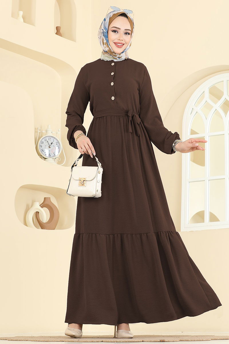 المنتج لديه ياقة بيضوية. المنتج به أزرار نصف أمامي. غير مبطنة. المنتج يحتوي على حزام خصر مُخاط. الحزام متضمن، ،يمكن استخدامها حسب الرغبة السوار مطاطي. قد يكون هناك اختلاف في الدرجة اللونية في المنتج بسبب التقاط الصور الفوتوغرافية.