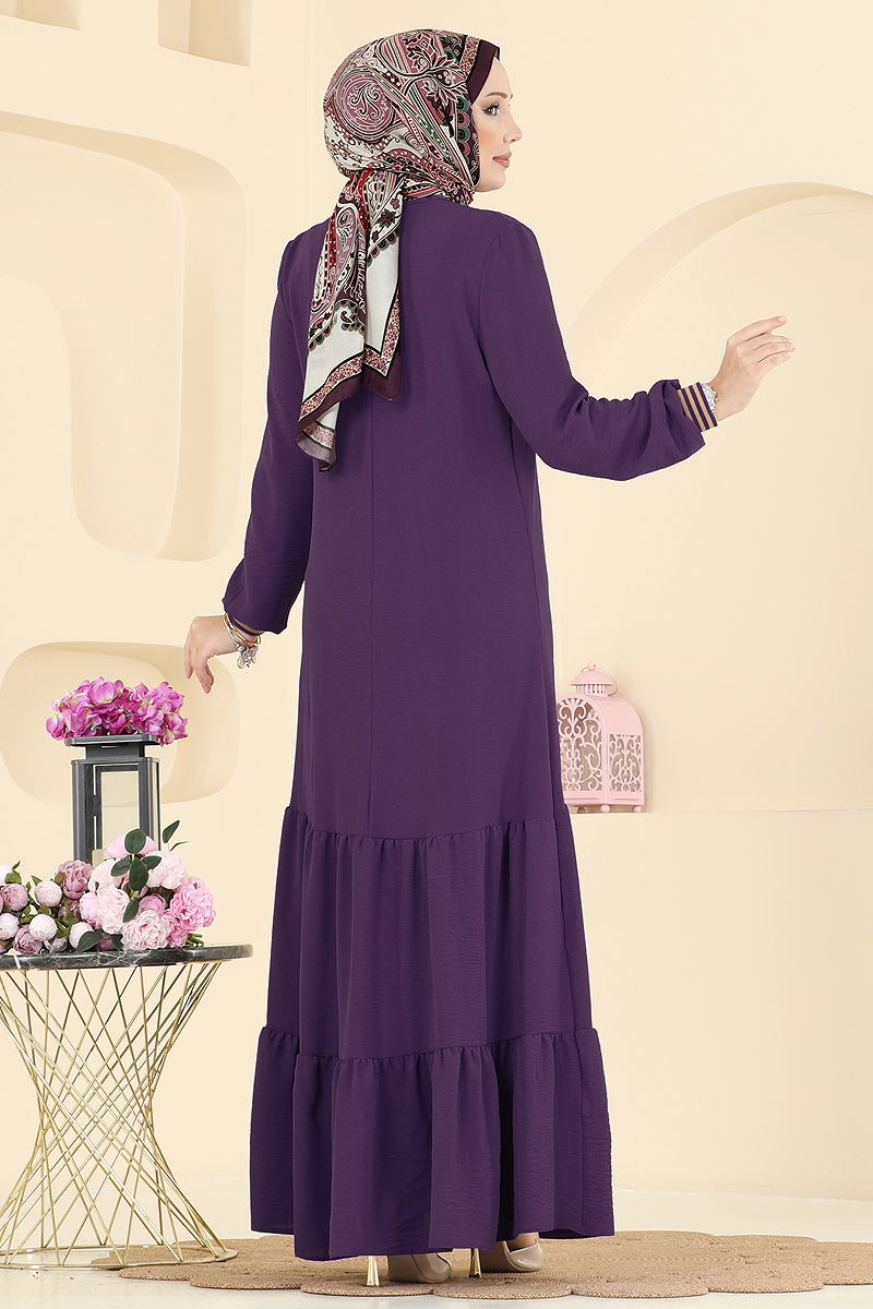 With its innovative and chic design, the Cuffed Garnish Detailed Aerobin Dress is perfect for all seasons. This dress is made from light and breathable aerobin fabric and features a bicycle neck design that offers a modern look. Its lining-free design aims for lightness, while the elastic details on the cuffs provide both comfort and style. It can be easily worn and taken off with a button located at the back. Ideal for those seeking an elegant option in modest fashion.