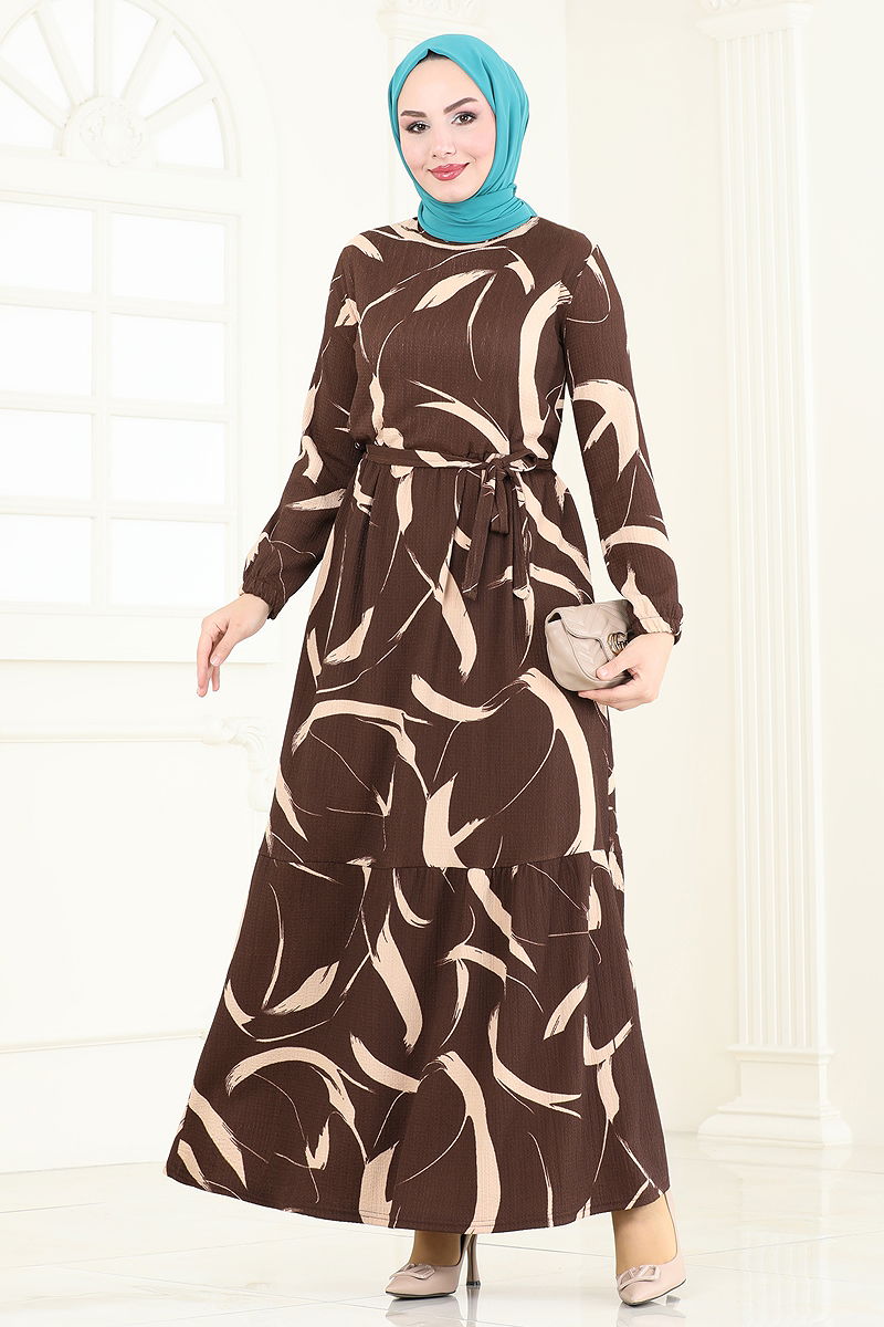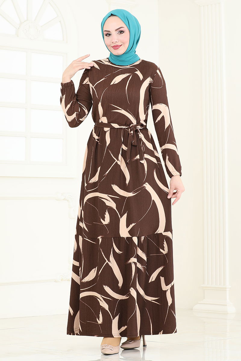 Patterned Ottoman Fabric Dress has been specially designed for those seeking modest fashion. It can easily be worn during Autumn and Winter. Its delicate ottoman fabric stands out with its capability to be washed at 30 degrees. The dress offers a modern look with its bicycle collar and unlined design, and is presented in size M. The belt, designed for ease of use, completes the elegance of the dress with its elasticated cuffs.