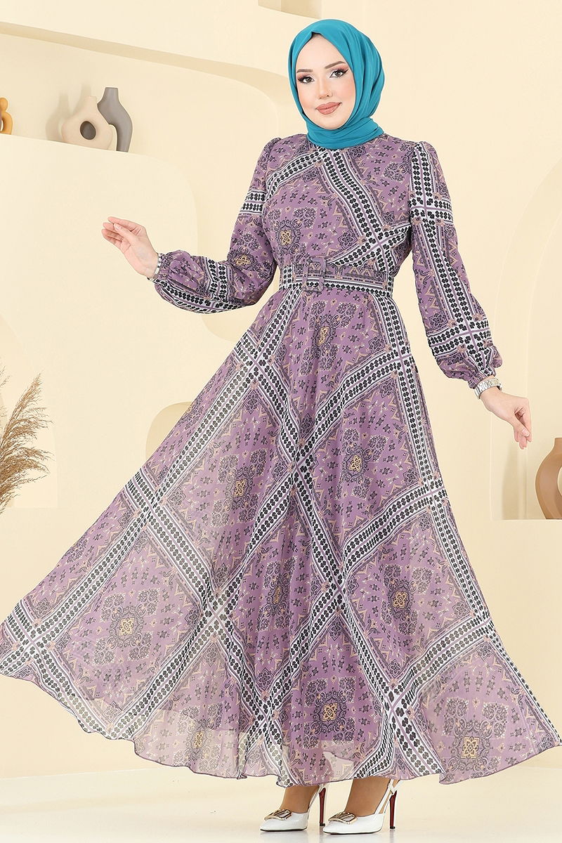 Elegant and stylish, the Belted Chiffon Dress is a modest attire suitable for all seasons. It can be washed gently at 30 degrees. With a bike-neck design and a zipper at the back, it offers both beauty and convenience. The lined dress provides comfort with its elastic cuffed sleeves and bike-neck. Its belted waist accentuates the elegance. The dress measures 165 cm in length, 88 cm chest, 68 cm waist, and 99 cm hips. The belt is included and can be worn at your discretion.