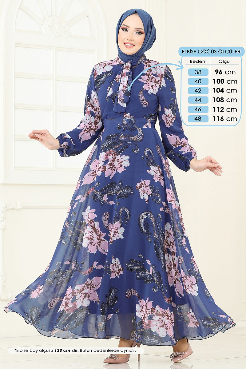 The Scarf Collar Chiffon Dress is a chic and modern modest wear option. Suitable for all seasons, it can be gently washed at 30 degrees. Made from chiffon, this lined dress features a back zipper for ease of wear. Its scarf collar adds a touch of elegance, and there is a functional button at the back. The belt is stitched at both ends, leaving the middle part open. The belt is optional and the cuffs are elasticated. The product displayed is a size 38.