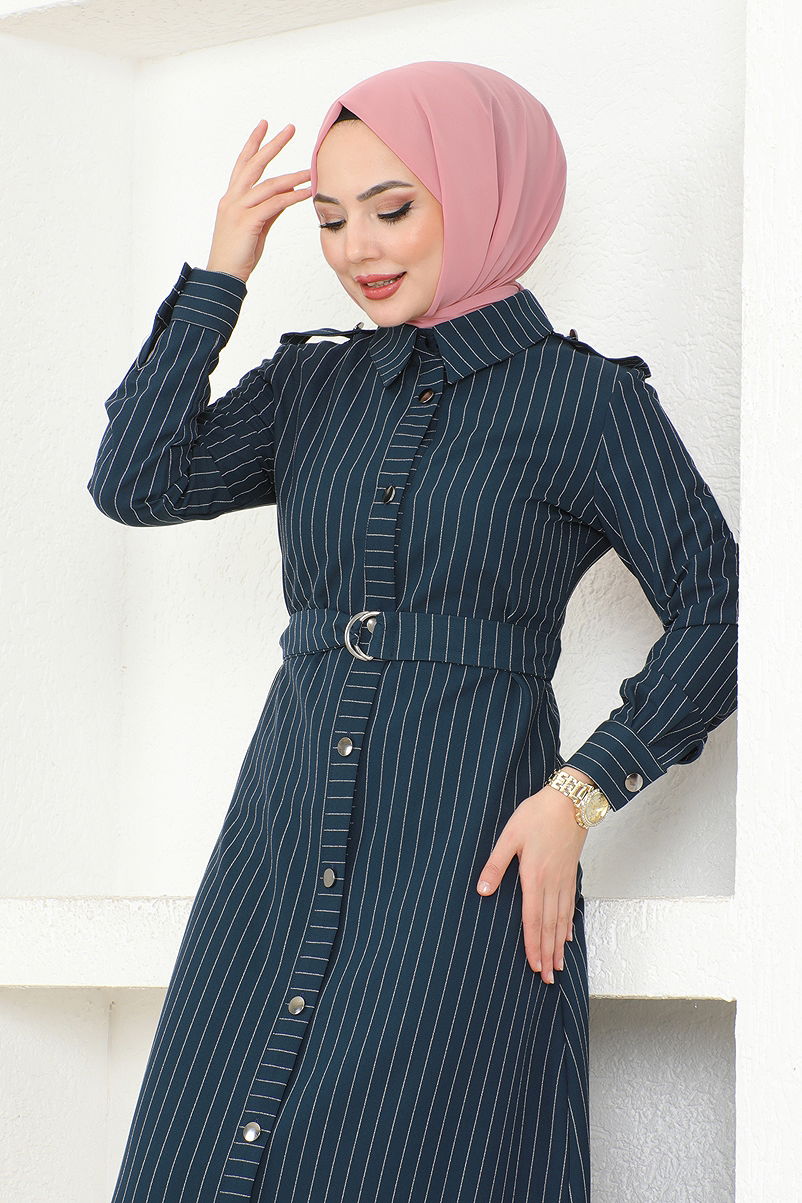 Fabric Property: Ouble crepe fabric.It can be used in four seasons.Product Feature :It is a new season hijab style product. (Unlined.)It has a functional buttons.Belt is included, can be used optionally.Active cuff buttonsThere may be a tonal difference in the product color due to the concept shots.