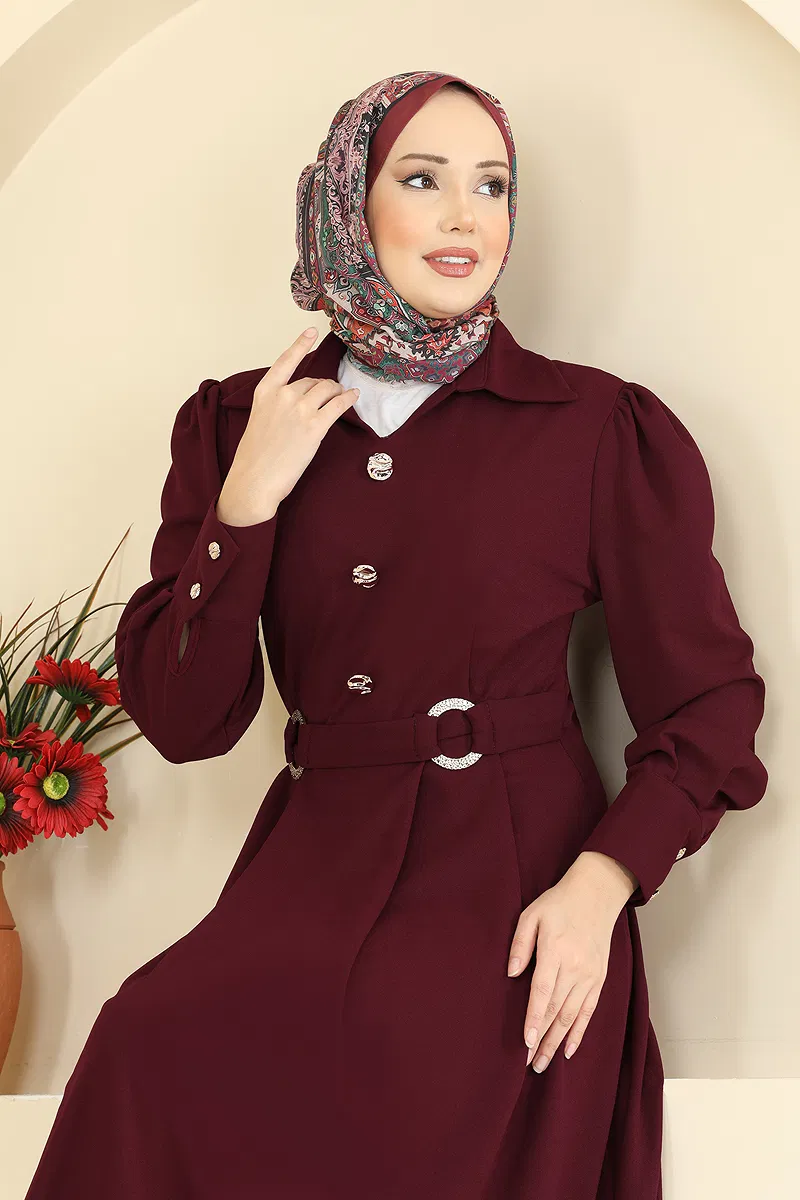 Product Feature : It is a new season hijab fashion product. The product has a Shirt collar. The product has From the front buttons. The belt is sewn. Buttons are accessories. Cuff buttons are active. There may be a tonal difference in the product due to concept photo shoots.