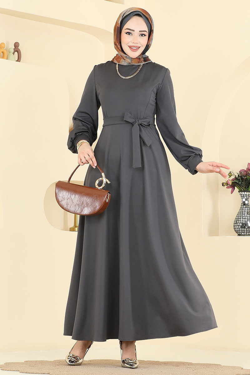 This stylish and comfortable Belted Scuba Fabric Hijab Dress is a versatile piece that can be worn across all seasons. It can be cleaned with a gentle wash at 30 degrees Celsius, ensuring durability with its robust scuba fabric. Featuring a crew neck design and an adjustable waist belt, it is both chic and practical. The belt is fixed at both ends with a stitch-free middle part and is optionally removable. The example on the model is in size 40 to give you an idea.
