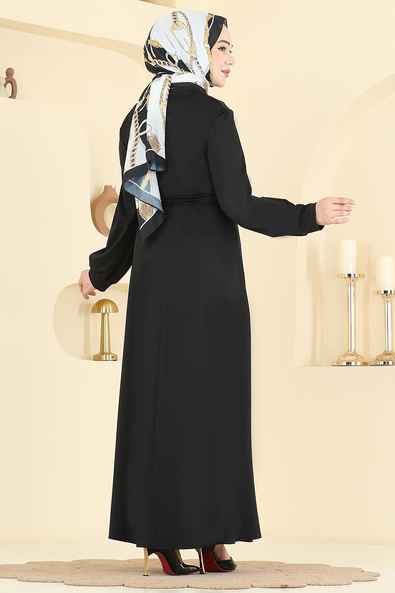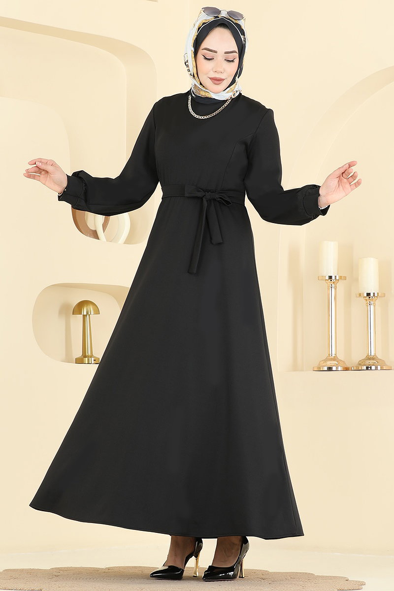 This stylish and comfortable Belted Scuba Fabric Hijab Dress is a versatile piece that can be worn across all seasons. It can be cleaned with a gentle wash at 30 degrees Celsius, ensuring durability with its robust scuba fabric. Featuring a crew neck design and an adjustable waist belt, it is both chic and practical. The belt is fixed at both ends with a stitch-free middle part and is optionally removable. The example on the model is in size 40 to give you an idea.