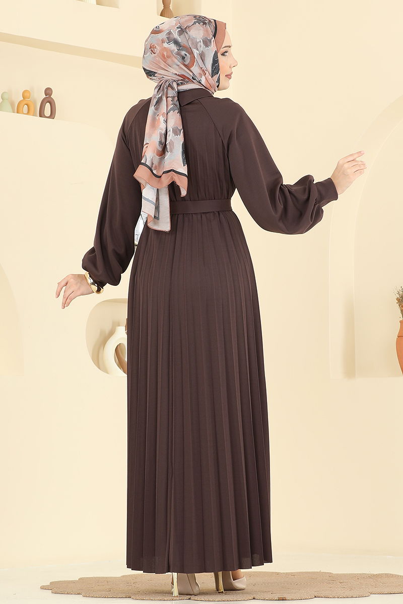 Product Feature : It is a new season hijab fashion product. It has a button that can be used from the back. The product has a Shirt collar. The product has from the back buttons. The product has frills at the Skirt part. It's unlined. It's see-through.. Belt included, optional not available. There may be a tonal difference in the product due to concept photo shoots.