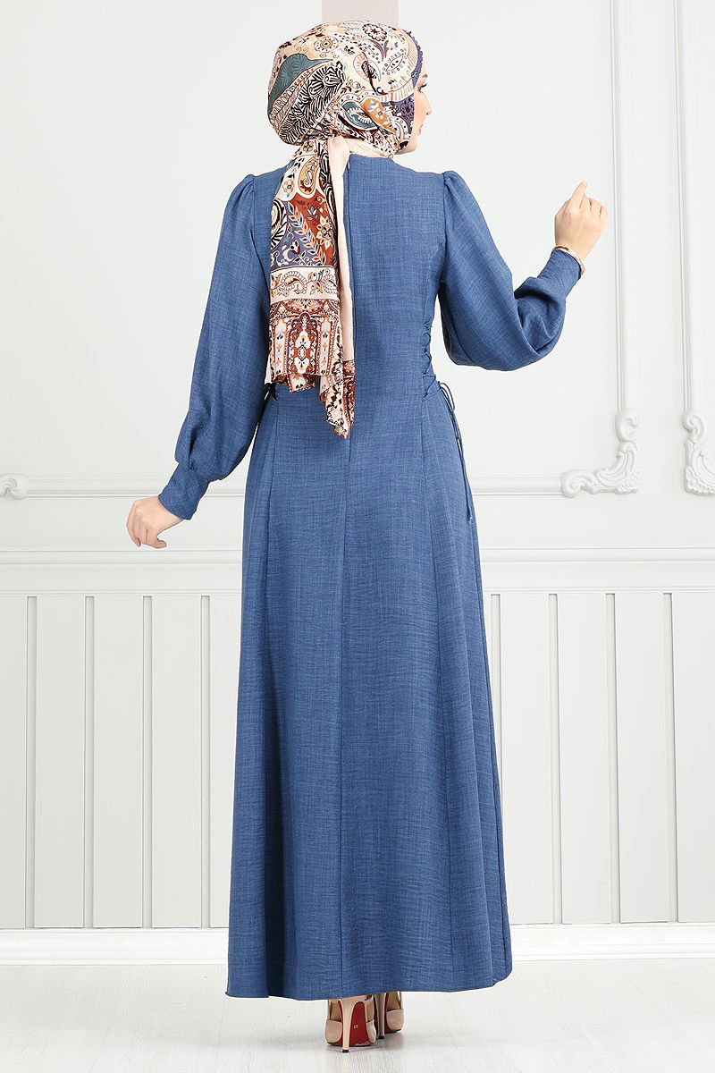 This chic Side Lace-Up Modest Dress is a perfect choice for all-season wear. Made from quality linen fabric, this dress offers long-lasting use and can be washed at 30 degrees on a delicate cycle. The back zipper facilitates easy dressing, while the bicycle neckline adds a modern touch. The lace-up detail at the waist enhances your elegance. With its lining-free design, this dress promises lightweight and comfortable wear, ensuring an elegant posture in any setting.
