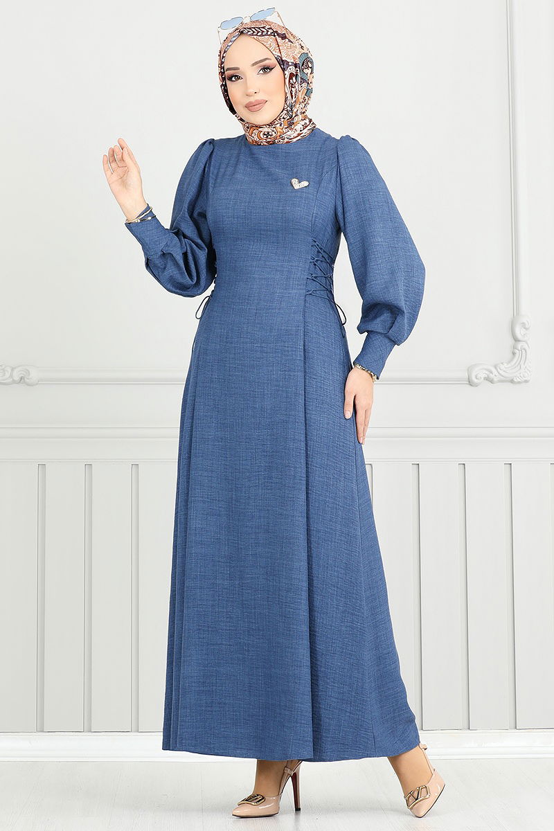 المنتج لديه ياقة دائرية. غير مبطنة. المنتج به سحاب في جزء من الخلف. الملحقات غير متضمنة. يتميز بخصر بأربطة على الخصر. قد يكون هناك اختلاف في الدرجة اللونية في المنتج بسبب التقاط الصور الفوتوغرافية.