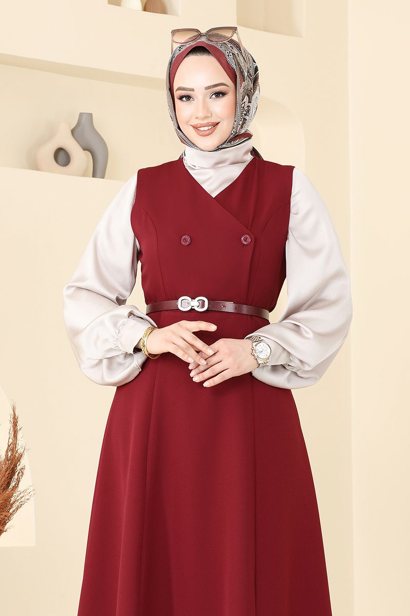 The Belted Modest Jilbab is a stylish choice suitable for all seasons. Washable at 30 degrees on a delicate cycle, this item is made from durable dabıl fabric. Featuring a V-neckline and button-front design, it adds elegance to your wardrobe. The belt is designed with stitched ends to prevent waviness and can be removed as desired. Ideal for a comfortable yet fashionable look. Note: blouse not included.