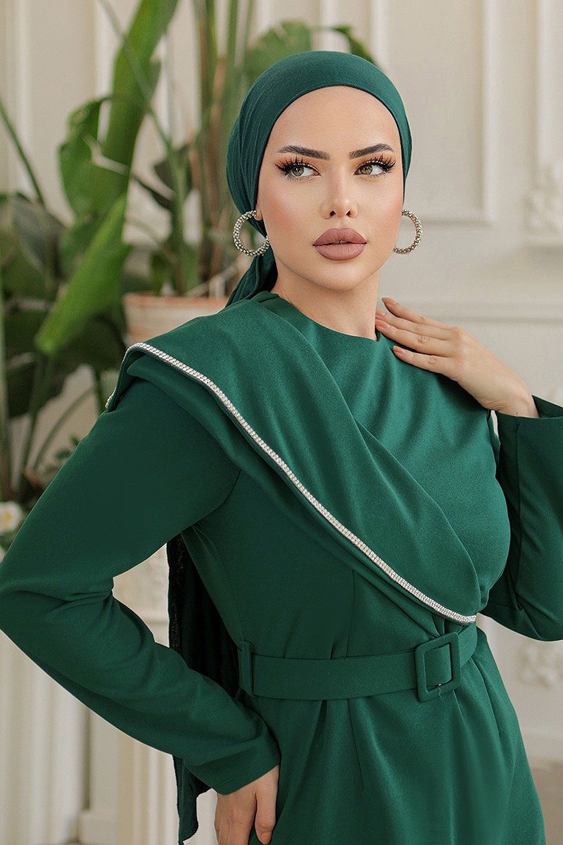 ميزة المنتج :منتجات الموسم الجديد موضة المحجبات. (غير مبطن.)ياقة دائرية.مزود بسحاب يمكن استخدامه من الخلفالمنتج يتضمن الحزام، .يمكن عدم الاستخدام حسب الرغبة.الحجارة ملصقة.قد تختلف درجة لون المنتج بشكل قليل على الواقع عن الصورة الموجودة بسبب إضاءة التصوير
