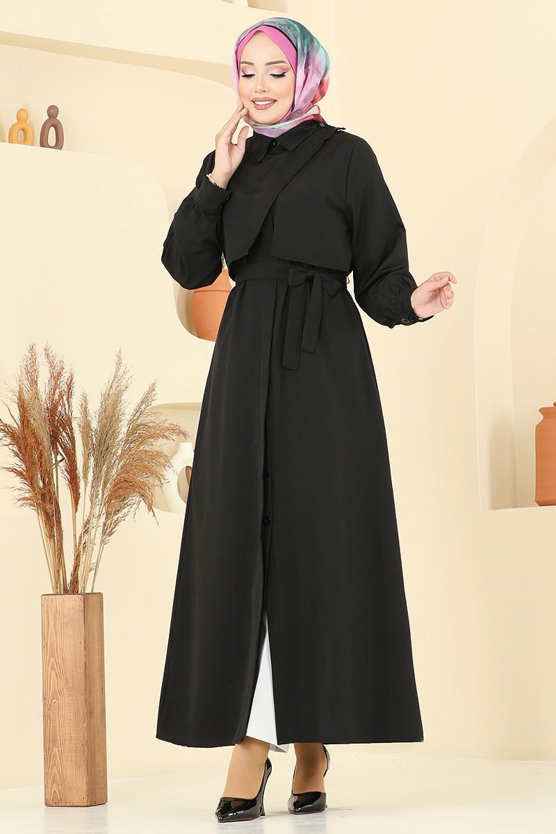Product Feature : It is a new season hijab fashion product. The product has a Shirt collar. The product has Secret buttons. Unlined. Belt included, optional not available. Cuff buttons are active. There may be a tonal difference in the product due to concept photo shoots.