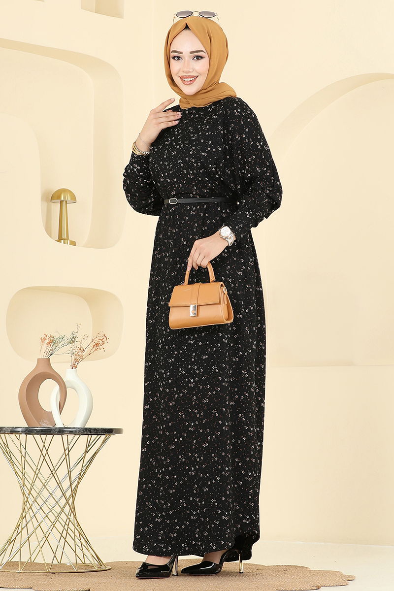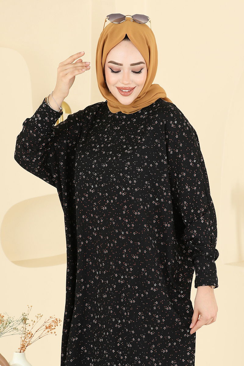 The Patterned Burlumcuk Dress is an ideal choice for those who prefer modest clothing. Suitable for all seasons, this dress can be washed at 30 degrees on a gentle cycle. Made from burlumcuk fabric, it features a crew neckline that offers a contemporary look. Its unlined design ensures a lightweight and comfortable wear. Designed as a standard size, this model accommodates a wide range of sizes from 36 to 52. The batwing sleeves promise a stylish yet comfortable style.