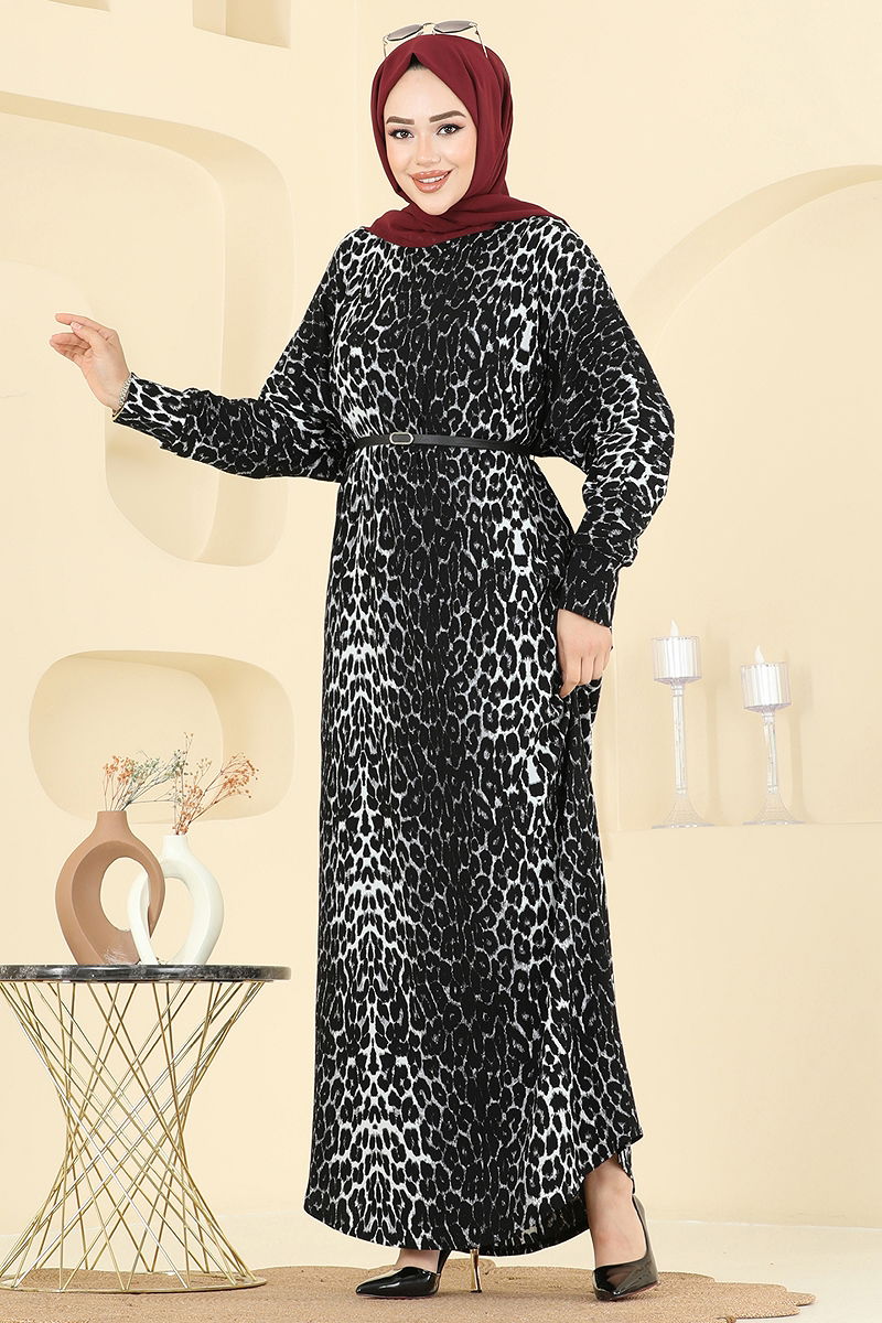 الفستان النمط 2 الفهد والأسود 7137ERK1158