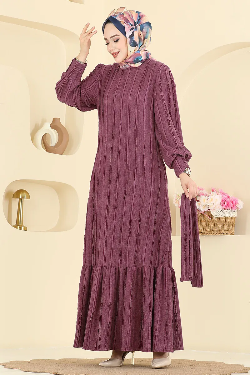 Highlighted by its details, the Crew Neck Detailed Dress is an ideal choice for modest apparel. Suitable for all seasons, it features a crew neck and buttoned back design, offering comfort with its unlined structure. This dress can be washed delicately at 30 degrees and comes with a belt detail that adds a stylish touch. The belt is included with the design and can be optionally removed. The product is presented in a size 38 sample.