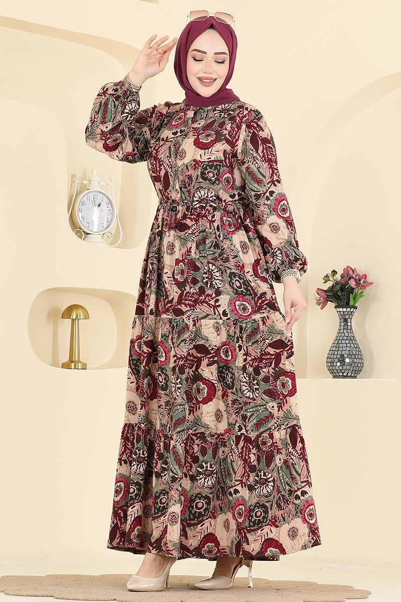 This chic and comfortable Floral Patterned Viscose Dress will help you maintain your style throughout the seasons. Made from viscose fabric, this dress features a semi-Mandarin collar and a half-button front design that stands out. It is suitable for delicate garments and can be washed without spinning at 30 degrees. Its elastic cuffs and adjustable waist tie offer a comfortable fit. It is an ideal choice for those who prefer modest fashion. The product on the model is size 42.
