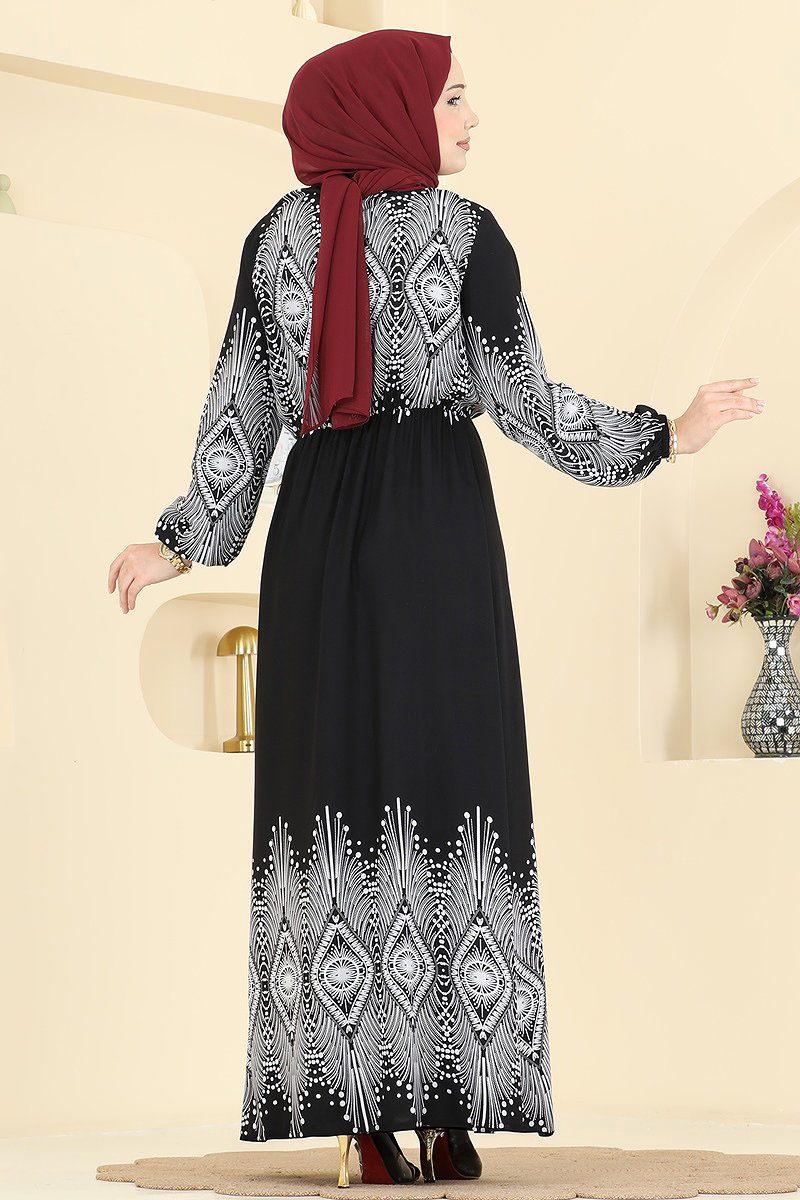 Dazzle in the elegant and modern design of the Eye Patterned Viscose Dress, a versatile choice for any season. Ideal for ladies who prefer modest clothing, this dress offers gentle wash at 30 degrees. The breathable viscose fabric ensures comfort all day long. Capture minimalist elegance with its crew neck and unlined design. Elastic details at the waist and cuffs guarantee a perfect fit, while the button at the back makes it easy to wear.