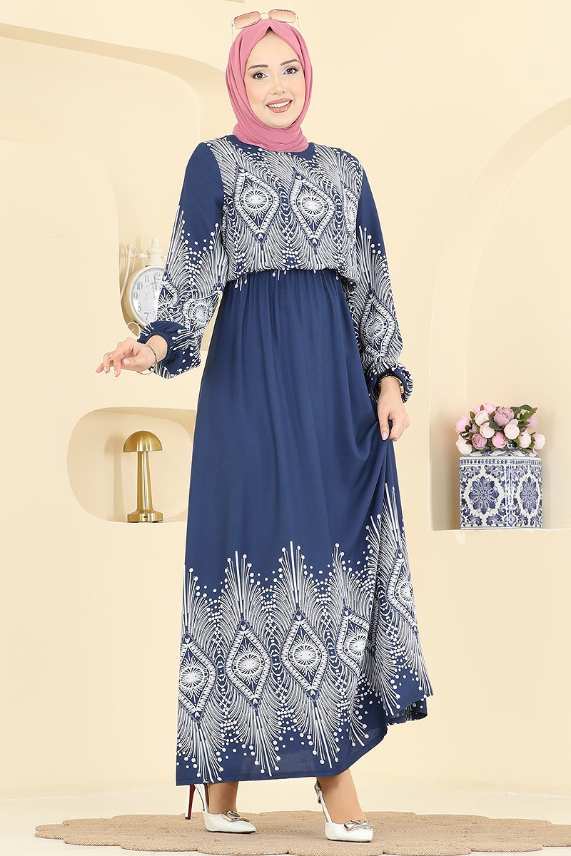 Dazzle in the elegant and modern design of the Eye Patterned Viscose Dress, a versatile choice for any season. Ideal for ladies who prefer modest clothing, this dress offers gentle wash at 30 degrees. The breathable viscose fabric ensures comfort all day long. Capture minimalist elegance with its crew neck and unlined design. Elastic details at the waist and cuffs guarantee a perfect fit, while the button at the back makes it easy to wear.