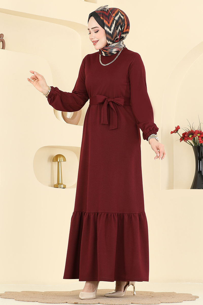 يوجد حزام يمكن استخدامه من الأمام. المنتج لديه ياقة دائرية. المنتج به كشكشة في جزء التنورة. غير مبطنة. السوار مطاطي. قد يكون هناك اختلاف في الدرجة اللونية في المنتج بسبب التقاط الصور الفوتوغرافية.