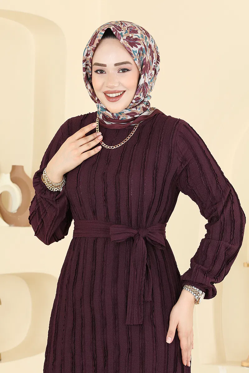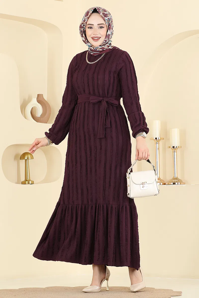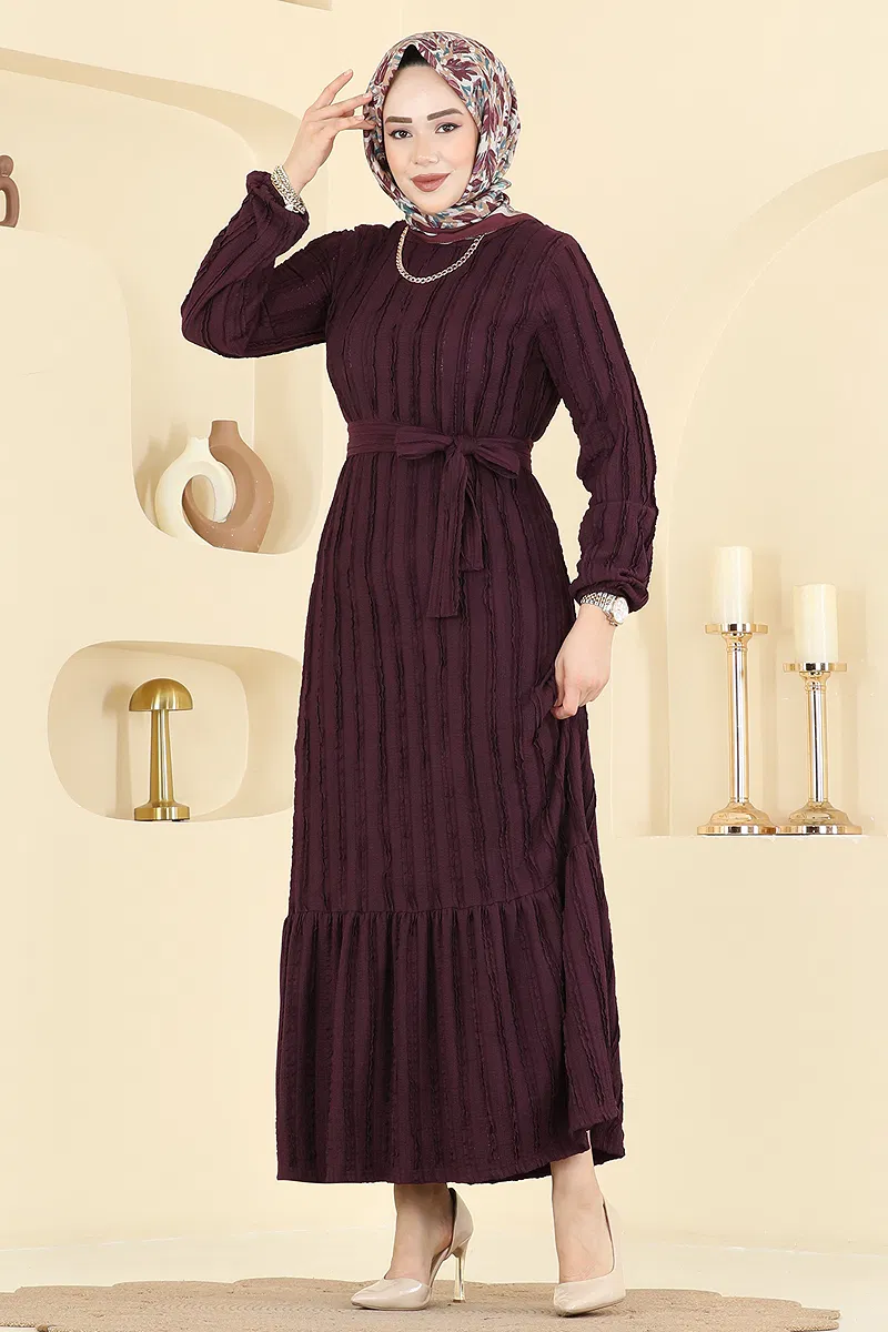 The Classic Striped Long Dress is a stylish and modern modest wear option. Suitable for all seasons, this dress provides comfort with its special Amozon-knit fabric. It can be washed at 30 degrees with gentle care and features a captivating scooter neck design. The belt is designed with secured ends and an unstitched middle, adding an elegant detail to the dress. The cuffs are elasticated for ease of wear. The belt is included with the dress and can be optionally removed.