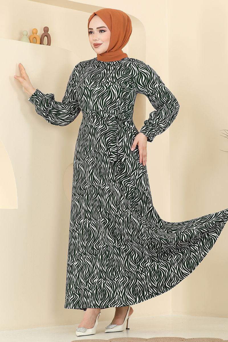 Elegant and stylish, this Patterned Dress with Belt Detail is a versatile choice for all seasons. Made from delicate crimped fabric, this modest dress stands out with its crew neck design and is unlined. It can be safely washed at 30 degrees gentle cycle, making its care effortless. The belt at the waist of the dress is designed with stitched ends while the middle part is kept unstitched to prevent waviness. The belt is included with the dress and can be optionally used. This dress will become a staple in your wardrobe, offering elegance in any setting.