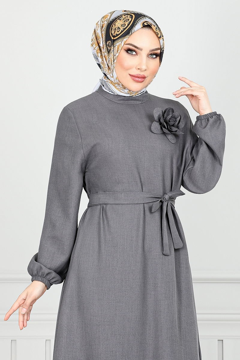 الفستان رمادي غامق 801OZR1047-M