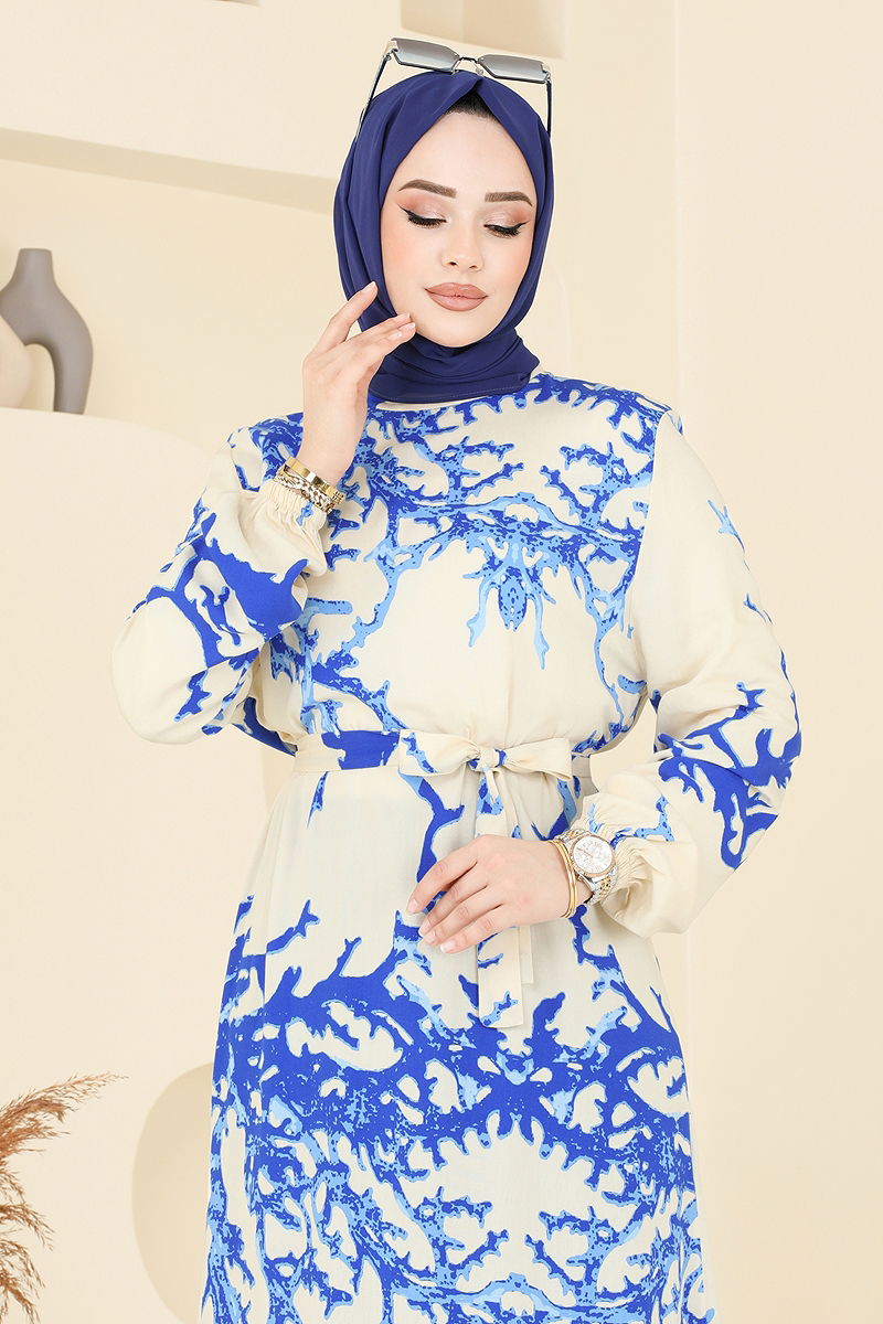 Offering both elegance and comfort, the Ebru Patterned Viscose Dress is a versatile choice for all seasons. Made entirely from viscose fabric, this dress should be hand washed to ensure longevity. Featuring a semi-mandarin collar design, it offers a contemporary look, is unlined, and has a zipper at the back. The cuffs are elasticated, and it comes with an optional belt, which is professionally finished with stitched ends to prevent waving. Whether for everyday wear or special occasions, maintain your style with this dress.