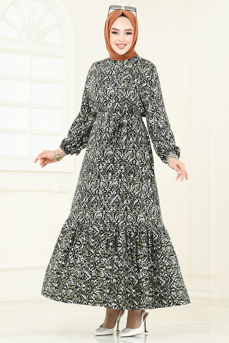 المنتج لديه ياقة نصف بيضوية. غير مبطنة. المنتج به سحاب في جزء من الخلف. الحزام متضمن، ،يمكن استخدامها حسب الرغبة السوار مطاطي. قد يكون هناك اختلاف في الدرجة اللونية في المنتج بسبب التقاط الصور الفوتوغرافية.