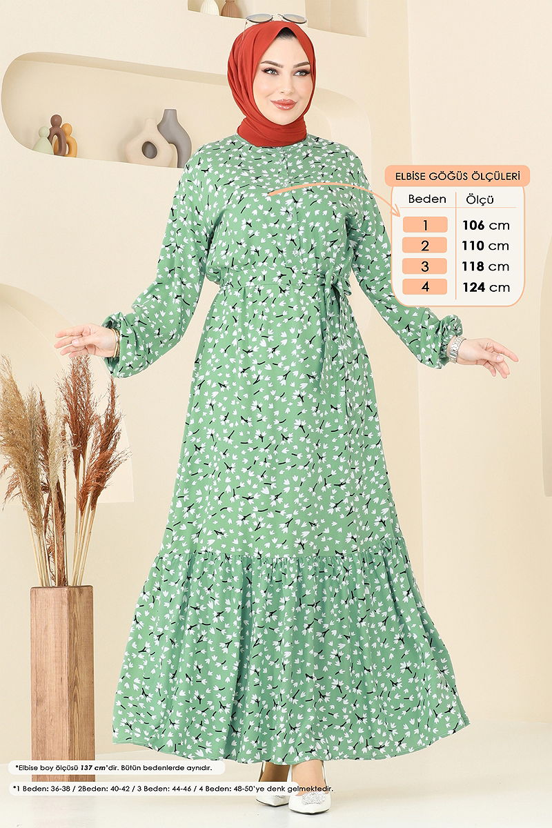 Crunchy Pattern Viscose Dress is a modest attire perfect for all seasons. Recommended to be hand washed, this dress is made from breathable viscose fabric. It features a semi-mandarin collar and half-button front details, offering a sophisticated look. The unlined design ensures a light and comfortable fit. The included belt is stitched at both ends with a stitch-free middle portion to prevent waving, and can be optionally removed. With elastic cuffs, this dress is both stylish and functional.
