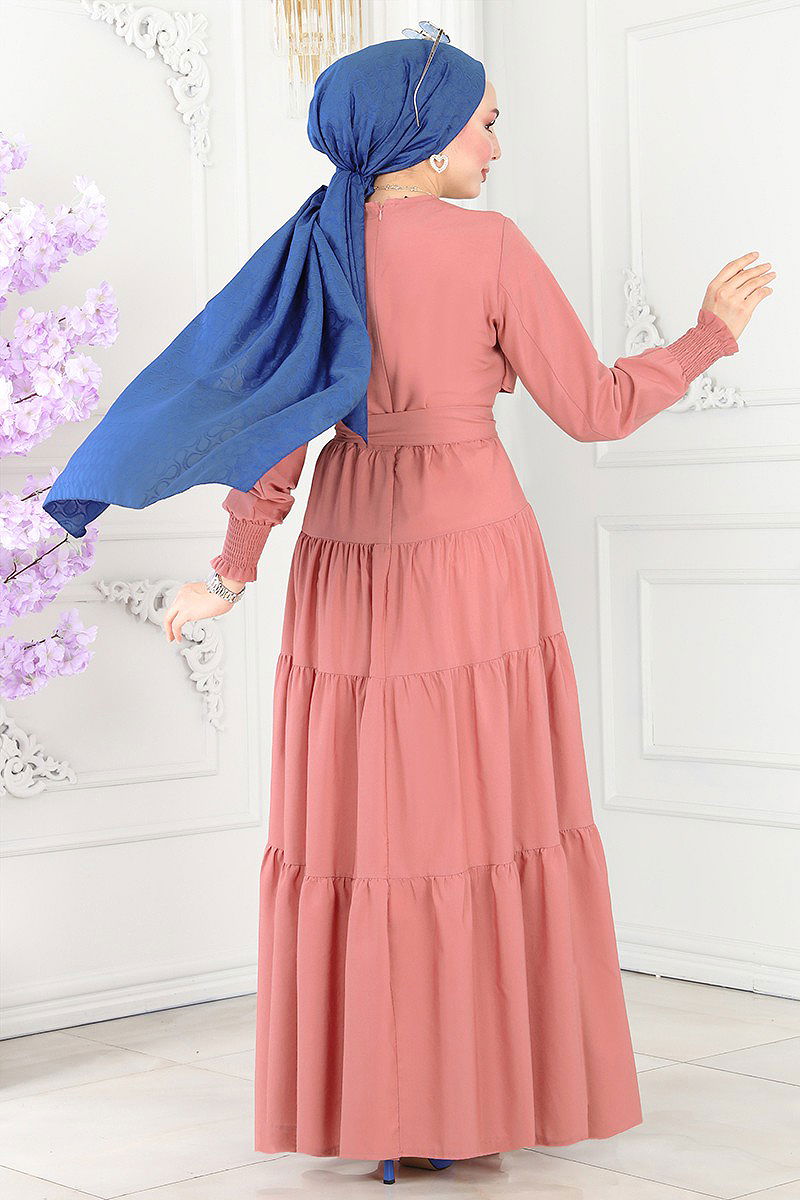 المنتج لديه ياقة دائرية. غير مبطنة.. المنتج به سحاب في جزء من الخلف. الحزام متضمن، ،يمكن استخدامها حسب الرغبة السوار مطاطي. قد يكون هناك اختلاف في الدرجة اللونية في المنتج بسبب التقاط الصور الفوتوغرافية.