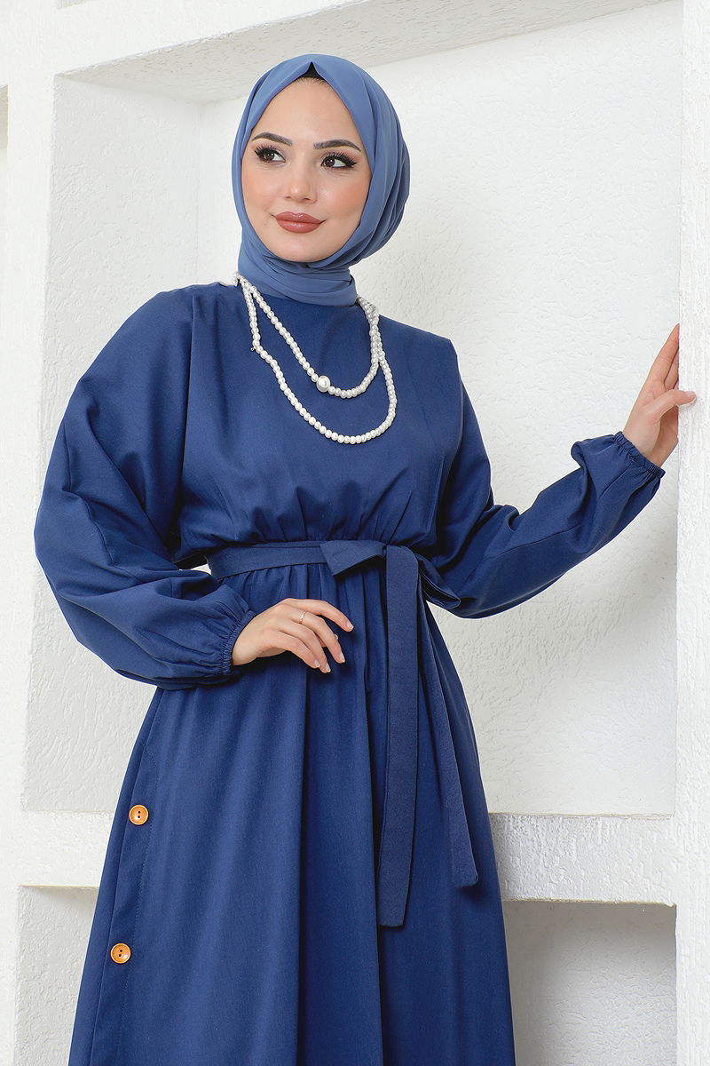 ميزة المنتج :منتجات الموسم الجديد موضة المحجبات. (غير مبطن.)ياقة دائرية.مزود بازرار تستخدم من الخلفالمنتج يتضمن الحزام، .يمكن عدم الاستخدام حسب الرغبة.المعصم ذو مطاط.قد تختلف درجة لون المنتج بشكل قليل على الواقع عن الصورة الموجودة بسبب إضاءة التصوير