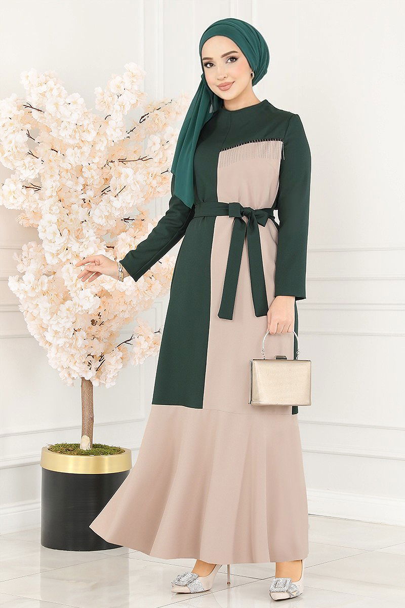 Product Feature :It is a new season hijab style product. (Unlined.)Cycling Collar.It has a functional back zipper.Belt is included, can be used optionally.There may be a tonal difference in the product color due to the concept shots.