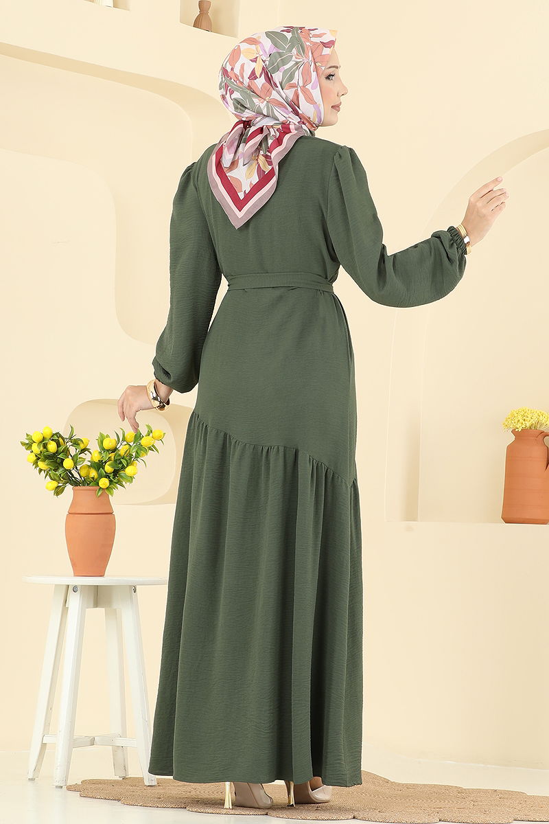 يوجد زر يمكن استخدامه من الخلف. المنتج لديه ياقة دائرية. غير مبطنة. الحزام متضمن، ،يمكن استخدامها حسب الرغبة السوار مطاطي. قد يكون هناك اختلاف في الدرجة اللونية في المنتج بسبب التقاط الصور الفوتوغرافية.