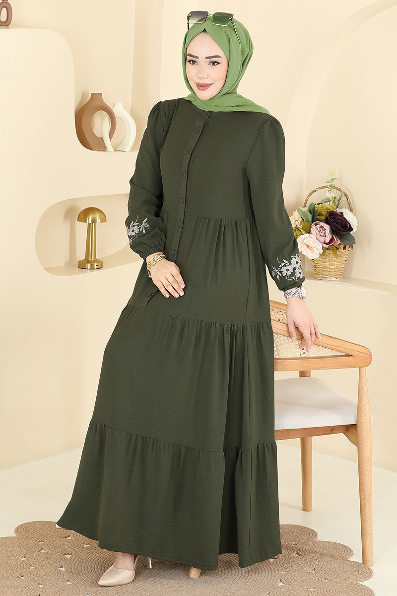 Product Feature : It is a new season hijab fashion product. The product has a Half Judge collar. The product has half front buttons. Unlined. Embroidery details are sewn. The cuff is rubberized. There may be a tonal difference in the product due to concept photo shoots.