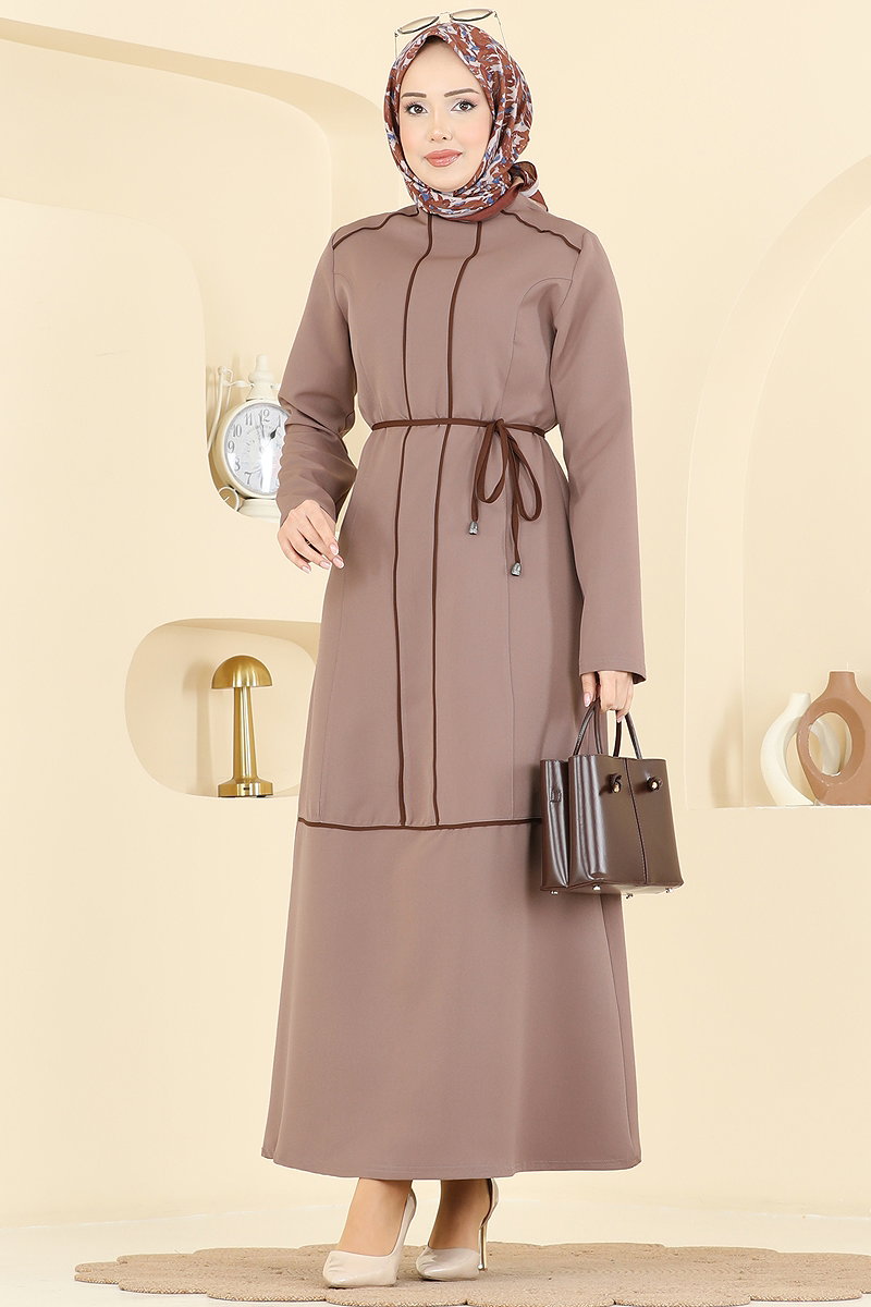 Stylish and functional, the Piping Detailed Dabıl Dress offers a modern touch to modest fashion. Suitable for all seasons, this dress is made from the delicate Dabıl fabric and can be washed at 30 degrees. Featuring a turtleneck design and a practical zipper at the back, it ensures ease of use. Perfect for daily wear, its simple and elegant design stands out. The product shown on the model is size 38.