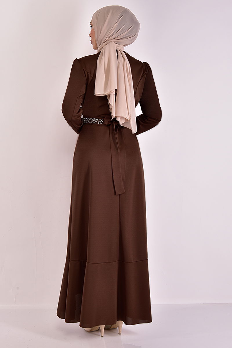 فستان بتنورة منفوشة مع تنورة منفوشة قهوة