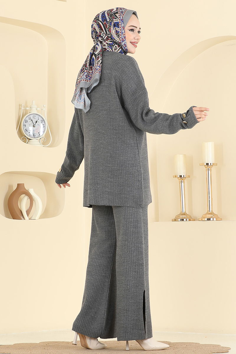 Düğme Aksesuarlı Triko Takım Antrasit