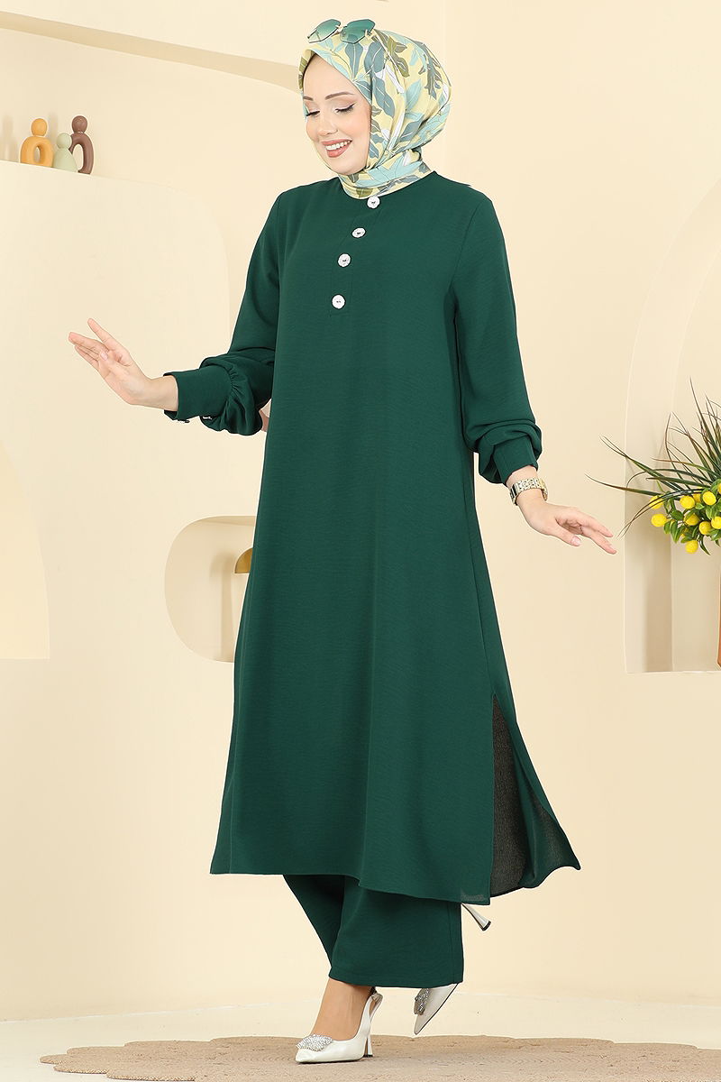 Düğme Detaylı Aerobin 2 li Takım 3035SMD1186 Zümrüt