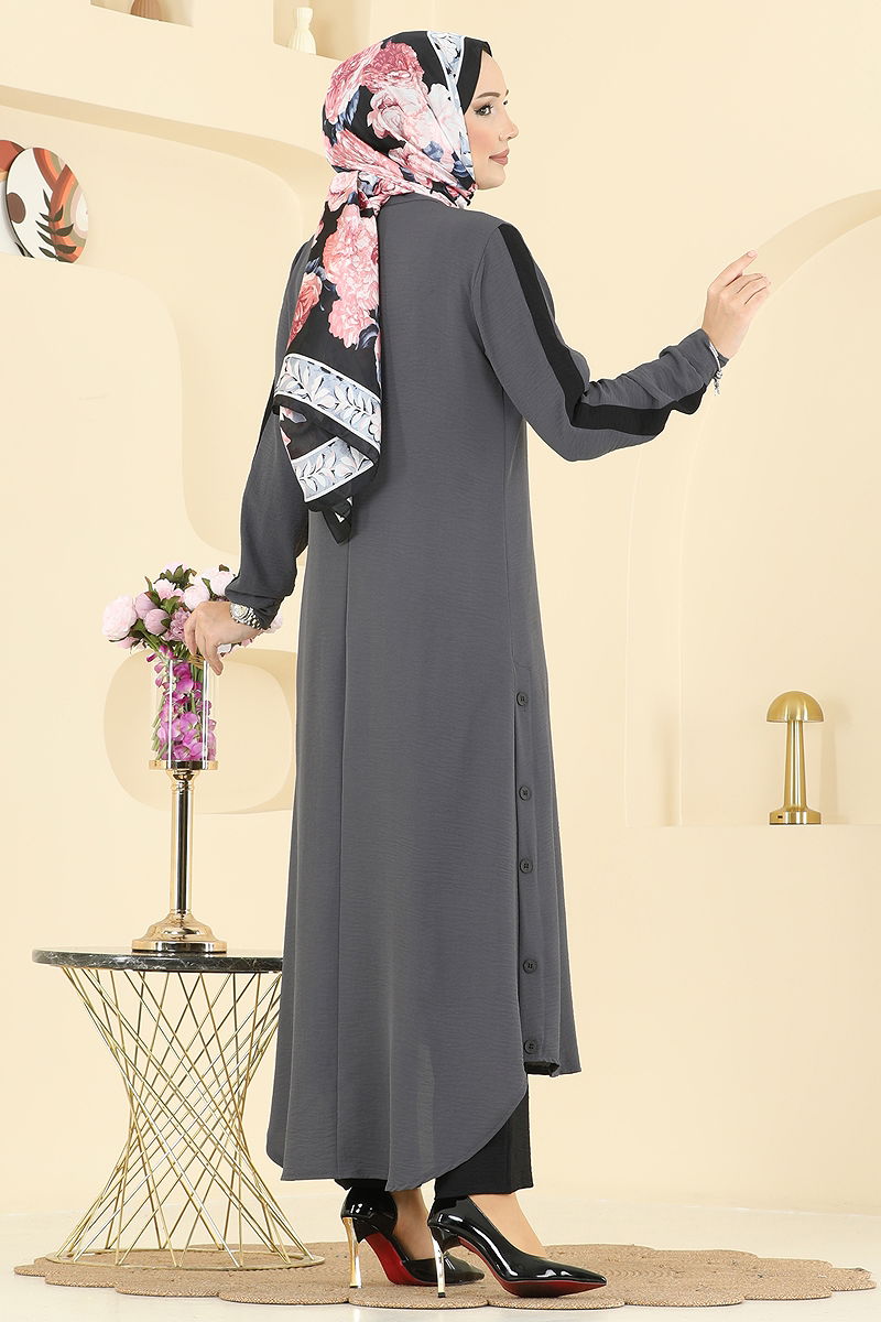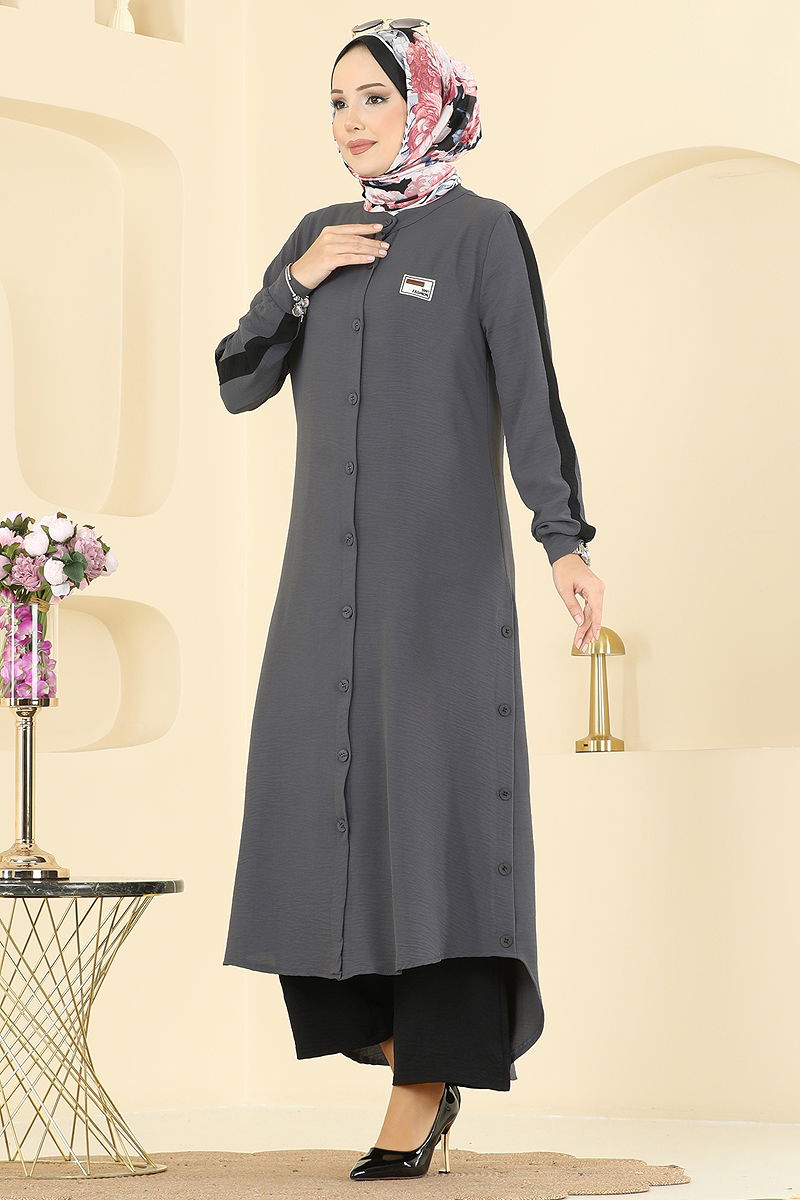 Düğme Detaylı Aerobin Takım Antrasit
